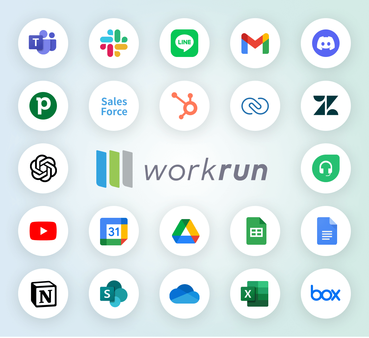 workrunは、普段の業務で利用している多様なソフトウェアと連携し、仕事の幅を大きく広げられます。
