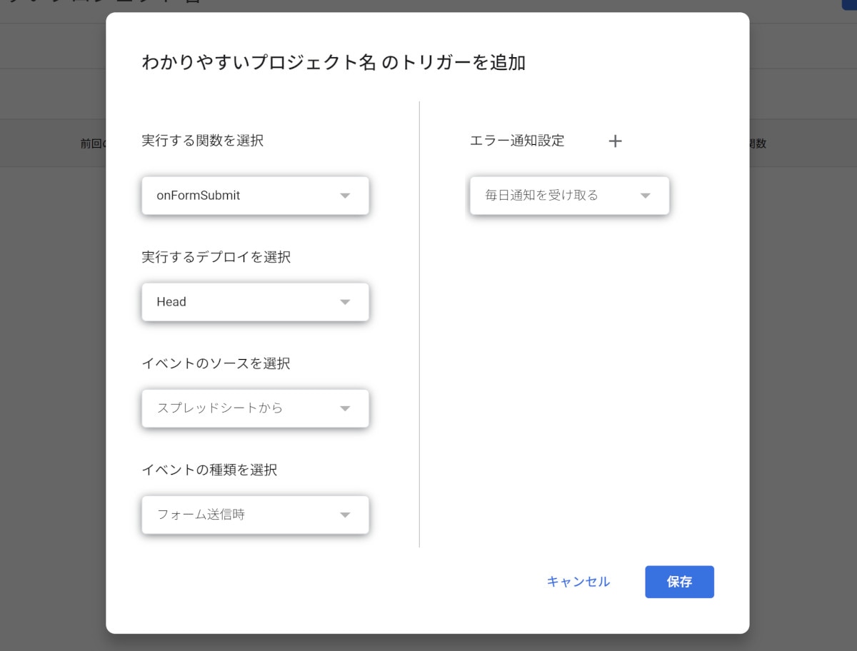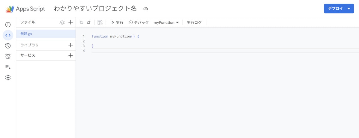 スクリプトを入力する画面が出てくるので、管理上わかりやすいプロジェクト名を設定するといいでしょう。
