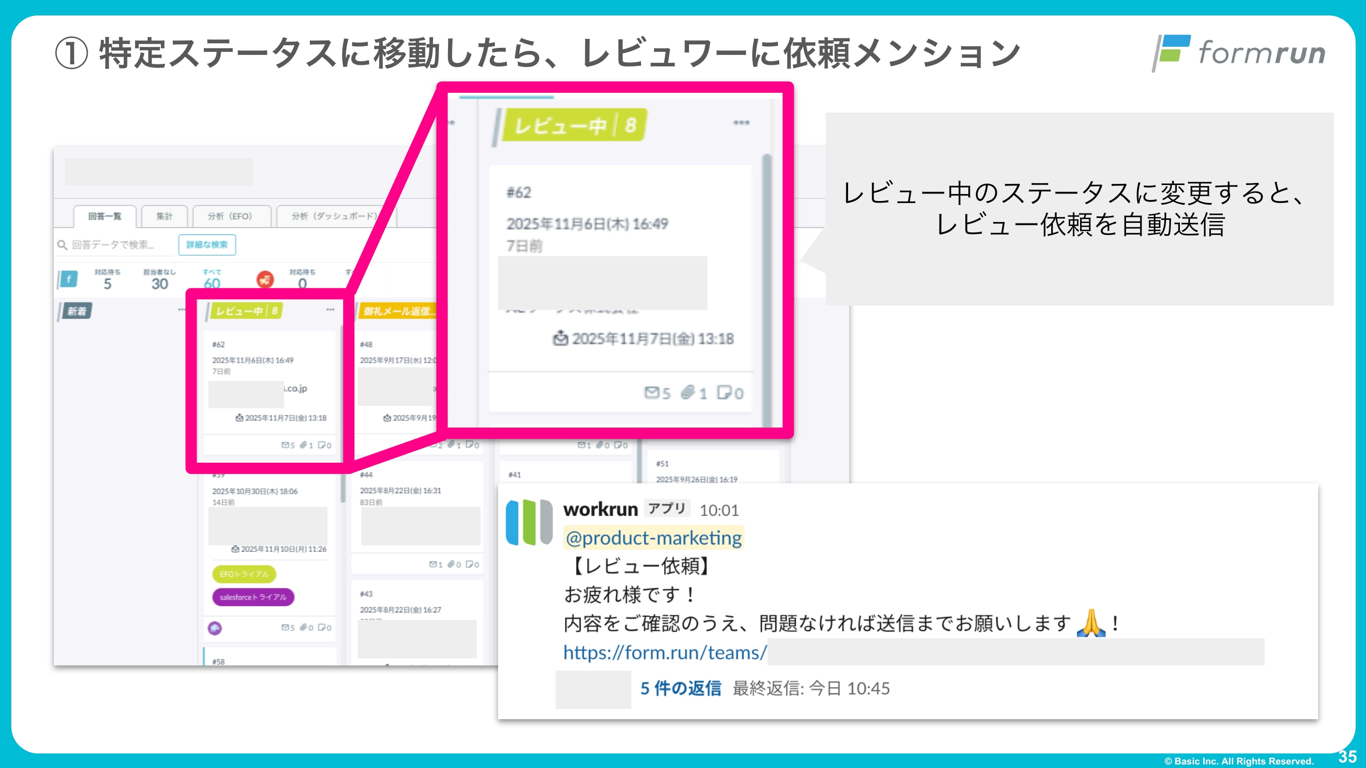 “ステータスを動かしたら依頼まで完了”の形に寄せたことで、都度レビュー依頼をする手間を省くことができました。