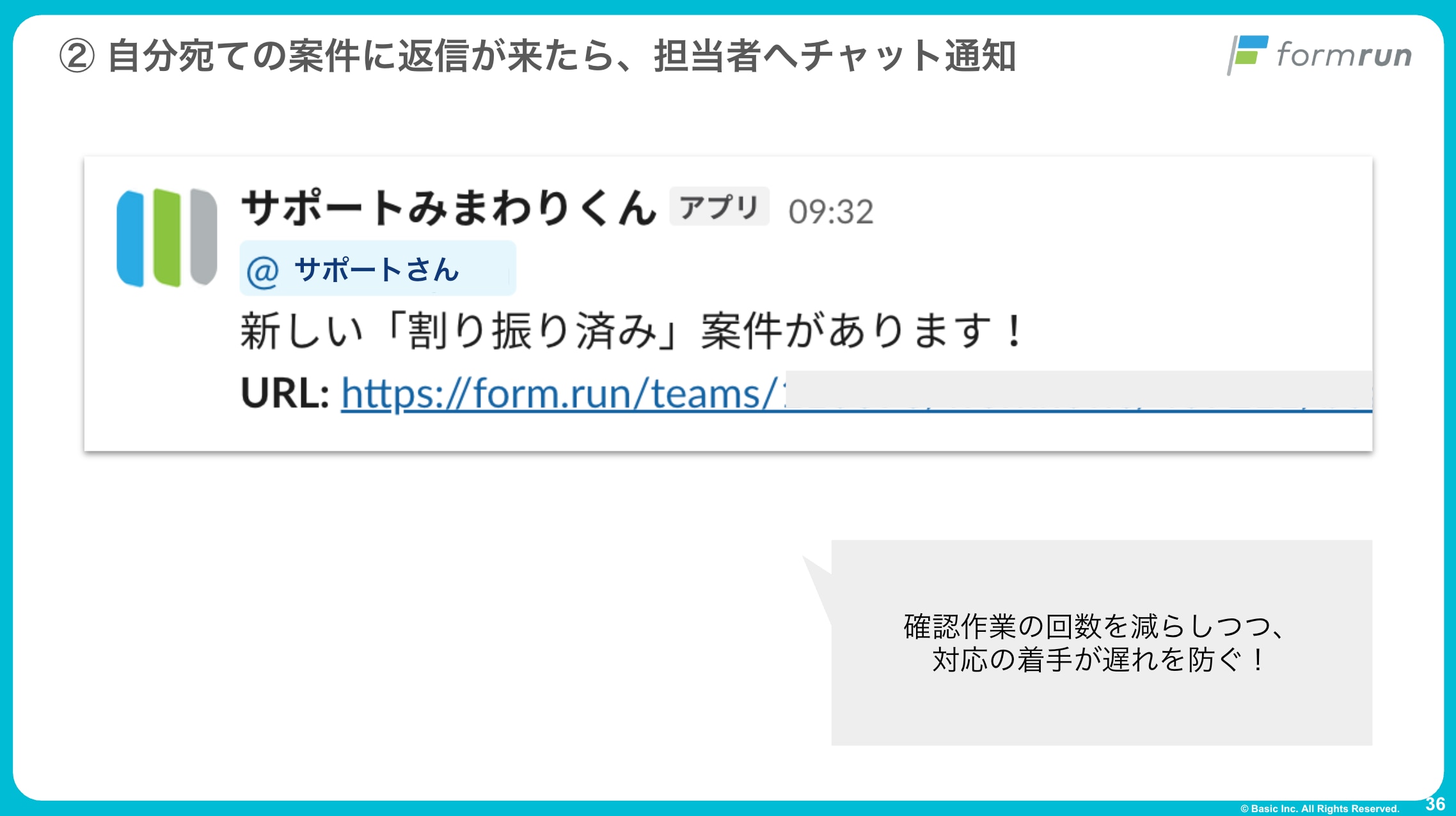 毎回formrunの管理画面にログインして確認する回数を減らしつつ、対応の着手が遅れにくい運用を狙っています。