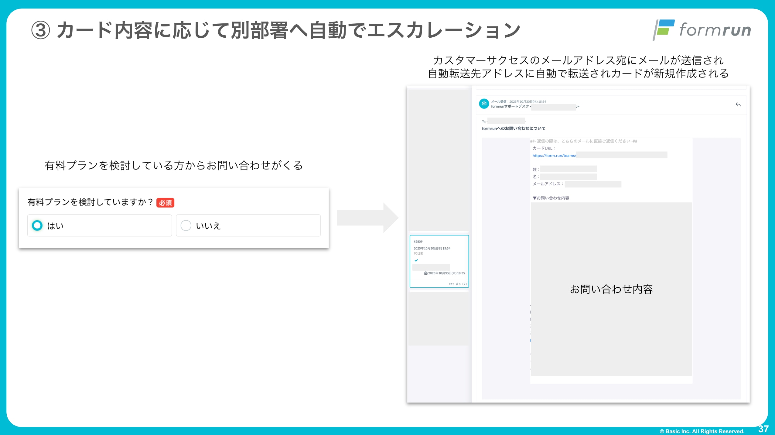 ③ カード内容に応じて別部署へ自動でエスカレーション