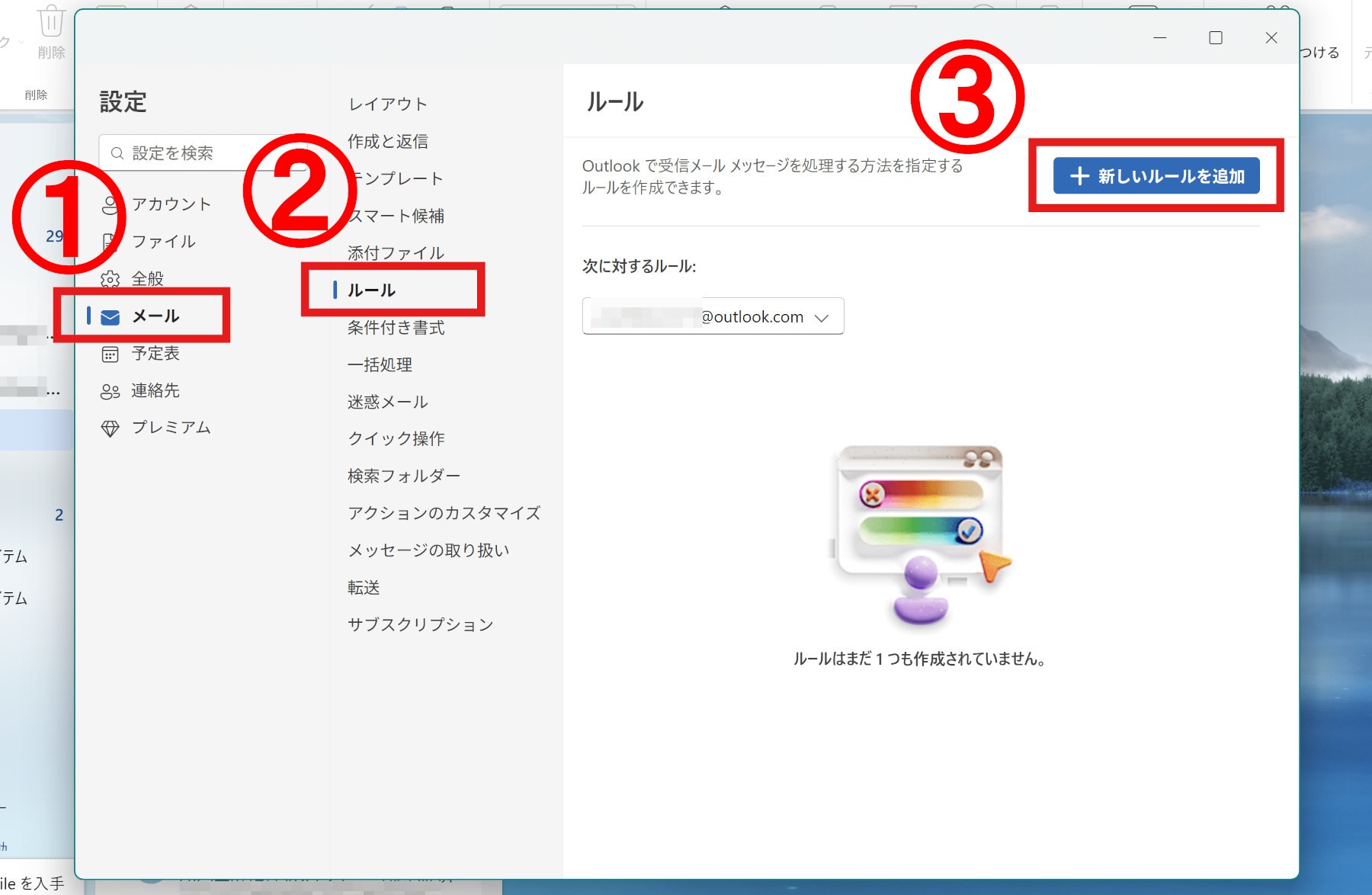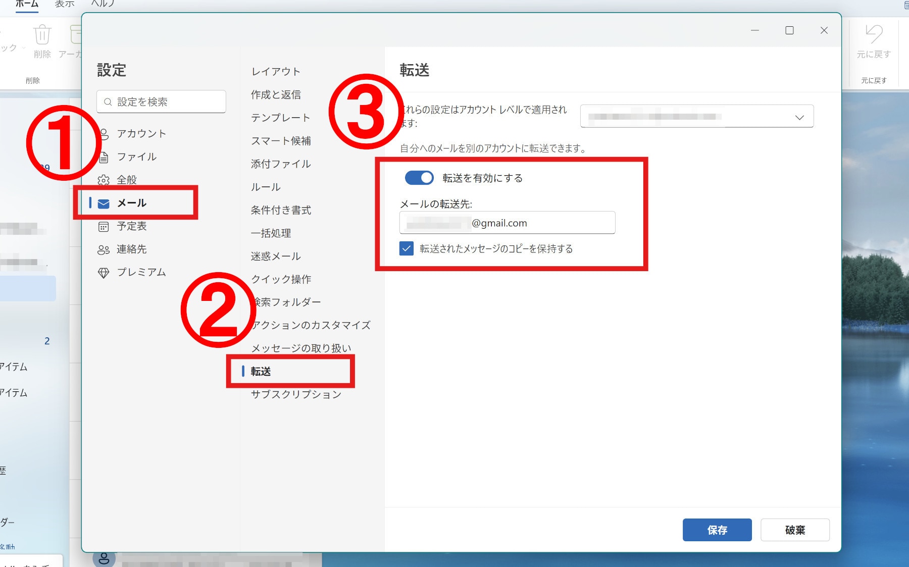 方法① Outlookの自動転送機能でGmailに転送する手順