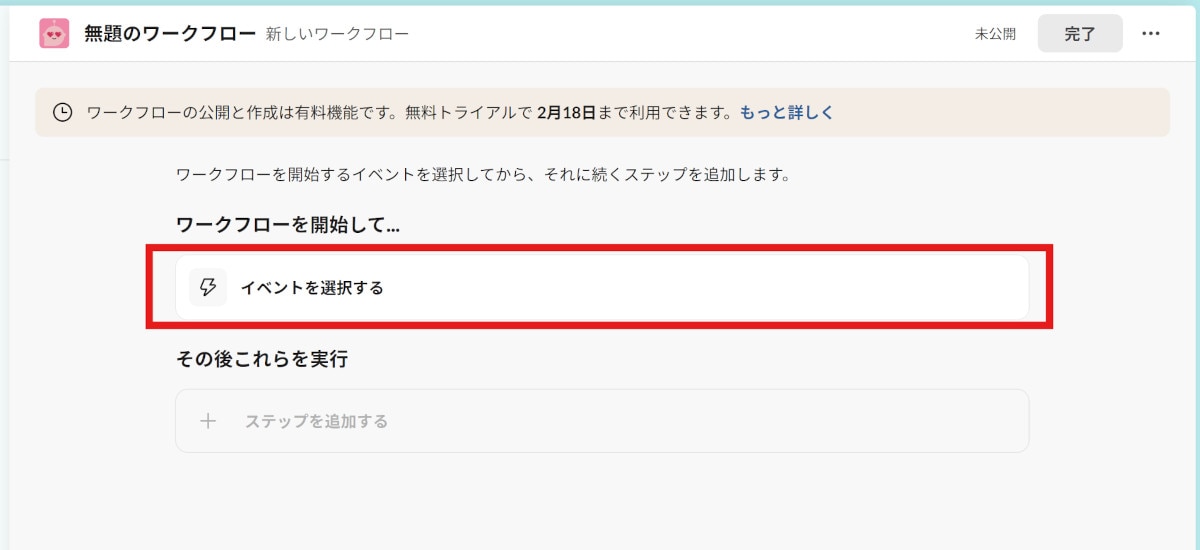 トリガーとなるイベントが設定できたので、次はステップを追加します。