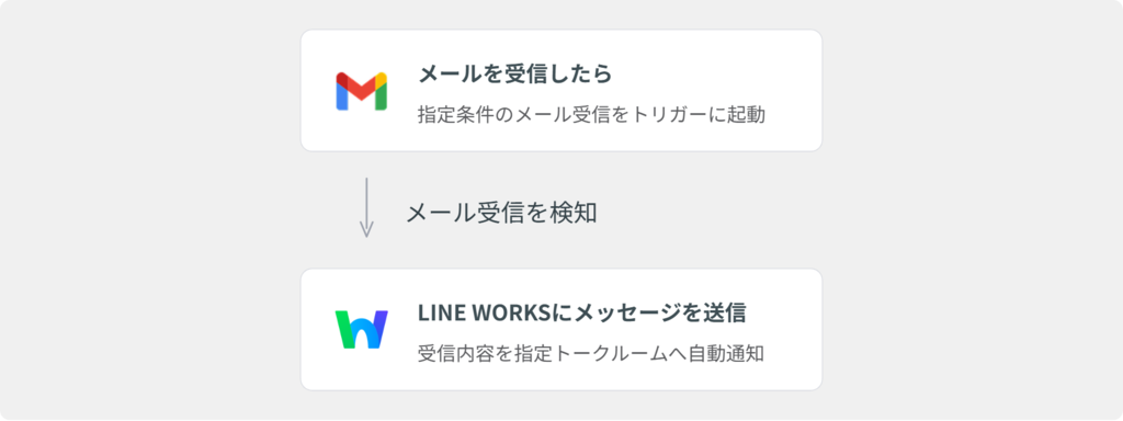 このテンプレートを使えば、メール受信をトリガーにLINE WORKSへ自動で通知できます。外出中や会議中でもリアルタイムで情報を把握でき、迅速な対応とチーム共有を実現します。